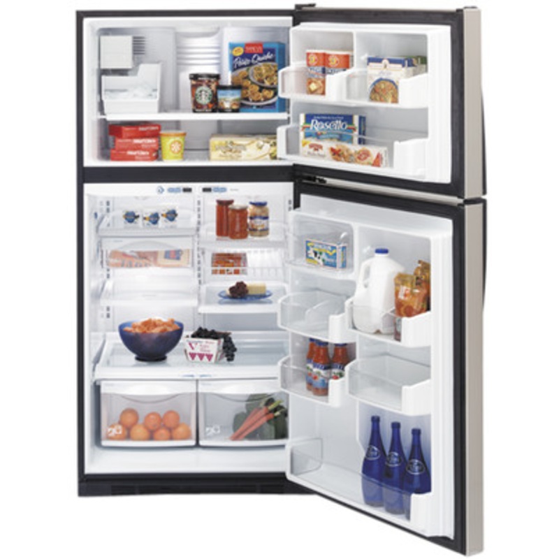 GE Profile ENERGY STAR 21.7 Cu. Ft. Stainless Top-Freezer Refrigerator with Internal Dispenser|PTS22SHRBS