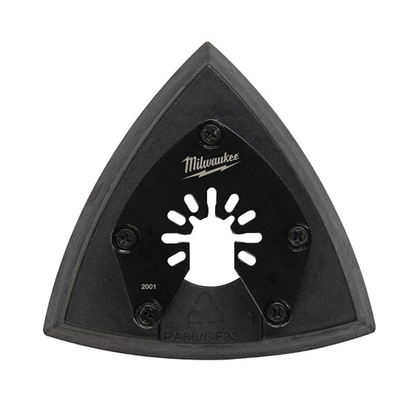 Milwaukee Triangle Sanding Pad, 3.35 in Length, 3-1/2 in Width, Dense Foam Backing, Cut Materials: Paint, Wood, 1 SheetsFeatures:3-1/2 in triangle shapeSecure hook and loop connection for quick-changesRaised OPEN-LOK anchor for flush cuttingLong-lasting la